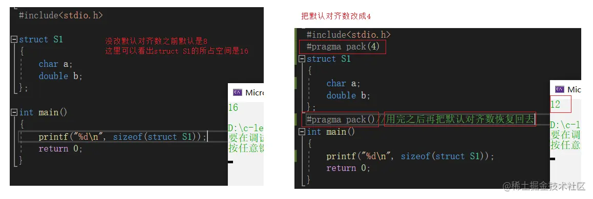 我们可以通过#pragma pack()来修改默认对齐数