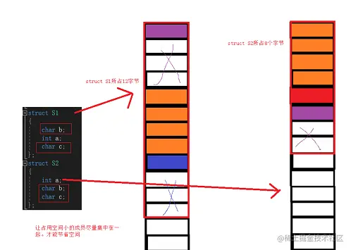那在设计结构体的时候,我们既要满足对齐,又要节省空间,如何做到: 让占用空间小的成员尽量集中在一起。
