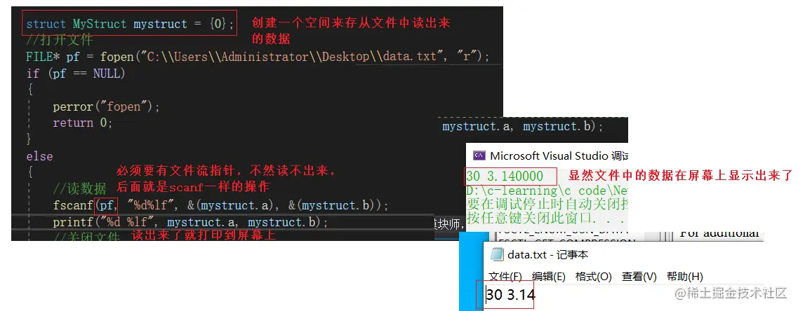 - 二进制文件的读取结束判断,判断返回值是否小于实际要读的个数。 例如: fread判断返回值是否小于实际要读的个数