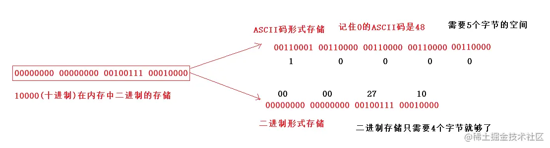 字符一律以ASCII形式存储,数值型数据既可以用ASCII形式存储,也可以使用二进制形式存储。 如有整数10000,如果以ASCII码的形式输出到磁盘,则磁盘中占用5个字节(每个字符一个字节),而二进制形式输出,则在磁盘上只占4个字节(VS2013测试)。