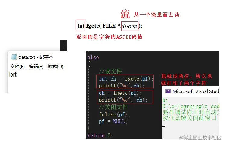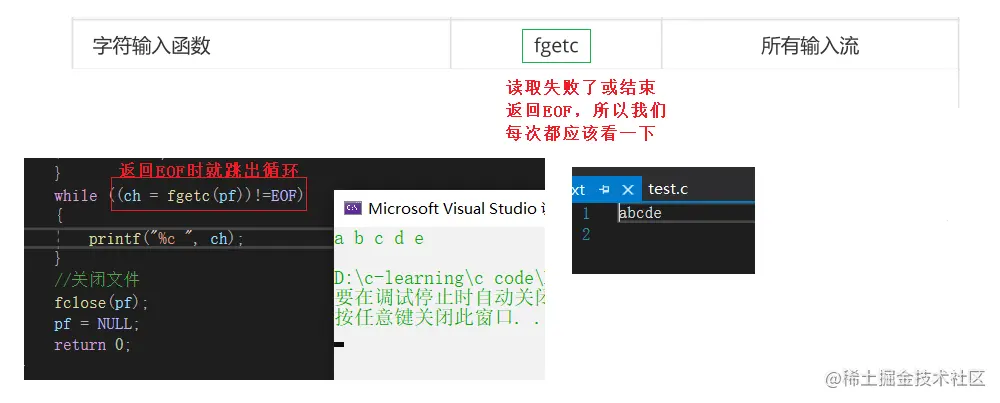 - 文本文件读取是否结束,判断返回值是否为 EOF ( fgetc ),或者 NULL ( fgets ) 例如: fgetc 判断是否为 EOF . fgets 判断返回值是否为 NULL .