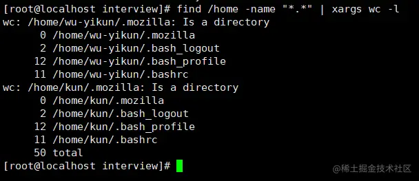 问题:统计 /home 目录下所有文件个数和所有文件总行数的指令。
