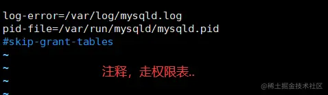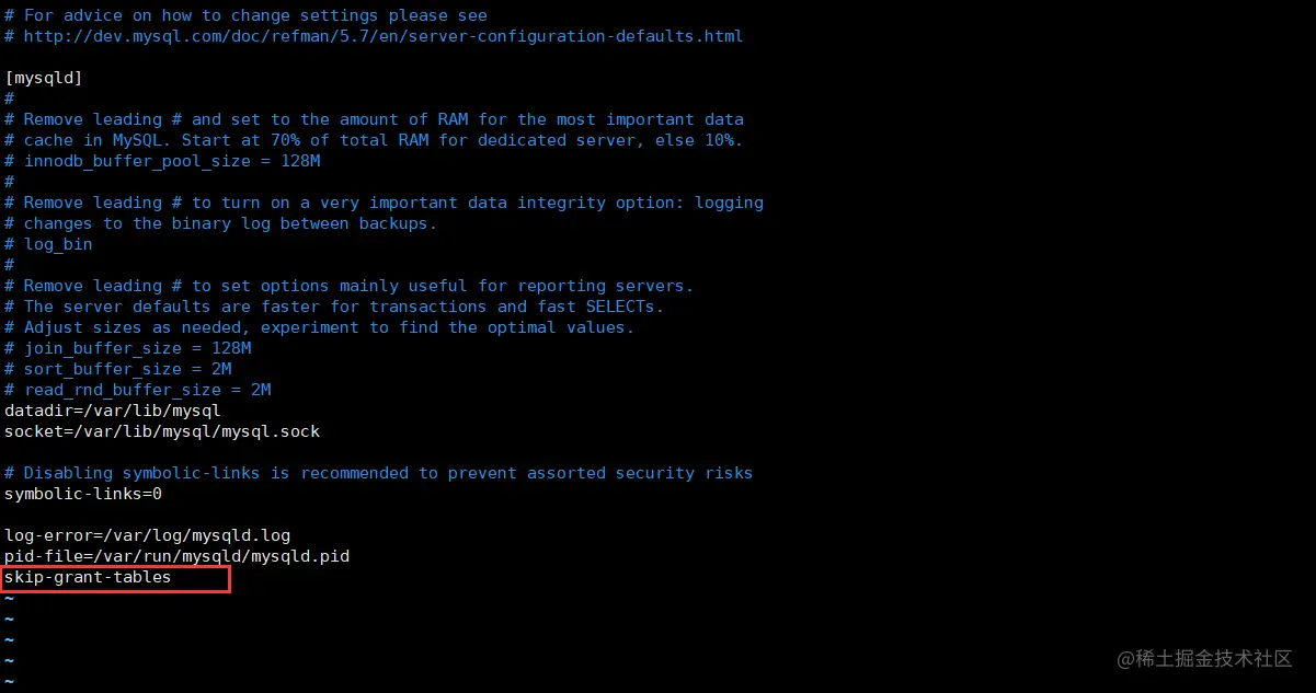 这里能直接进入而无需密码就是因为刚刚配置了 skip-grant-tables,直接可以越过权限表进入。显然这是 mysql 为防止用户忘记密码而准备的操作。