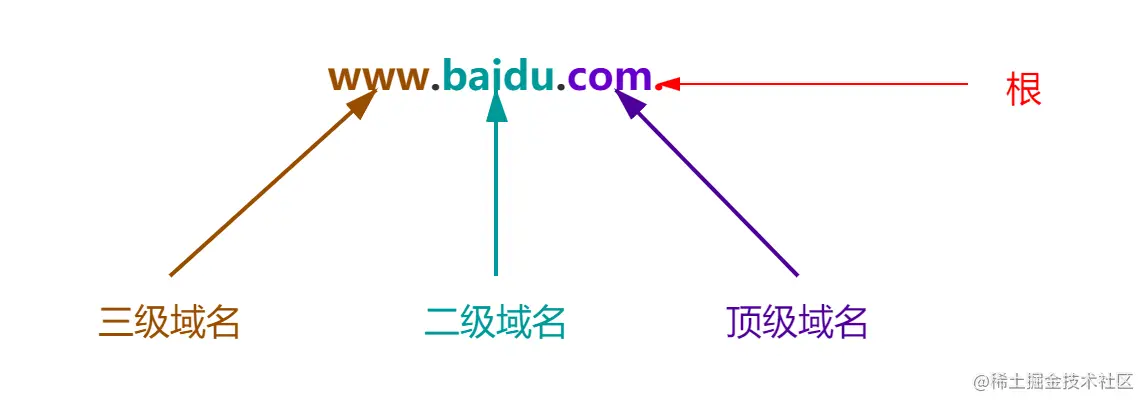 - 根域名服务器根据收到的请求,判断该域名()属于 域,将对应的顶级域名服务器 的 地址返回到本地域名服务器