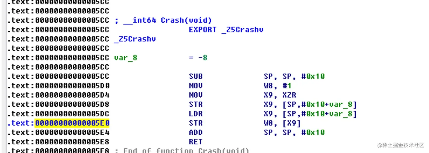我们看到3.1节中我们拿到的dump中的崩溃信息是 arm64 ,崩溃地址是0x5e0,下吗我们使用add2line来进行分析下