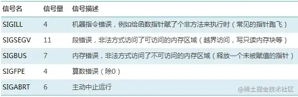 Signal xx: 代表错误类型,我们可以先从错误类型上初步判断是哪种类型的崩溃,常见的Native崩溃如下。其中 SIGSEGV时遇到的机率基本上最高的。