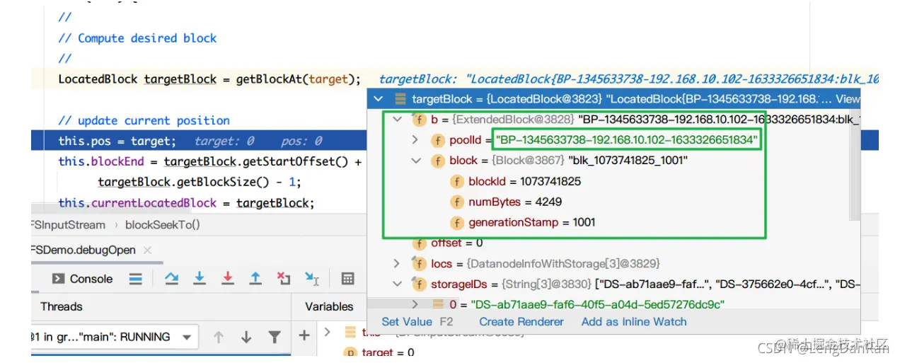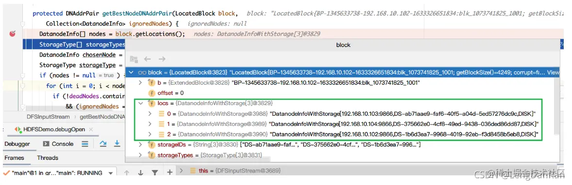 经过这个方法,我们就可以得到目标DataNode:这里和我的集群192.168.10.102对应上了!