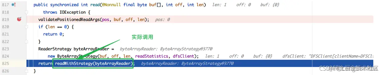 实际调用的read()方法: