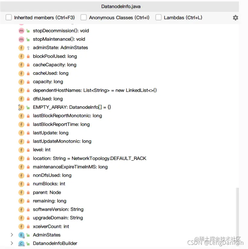 DatanodeInfo对象是对DataNode信息进行了封装,我们可以进去看看: