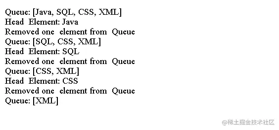 System.out.println("Head Element: " + queue.peek());
