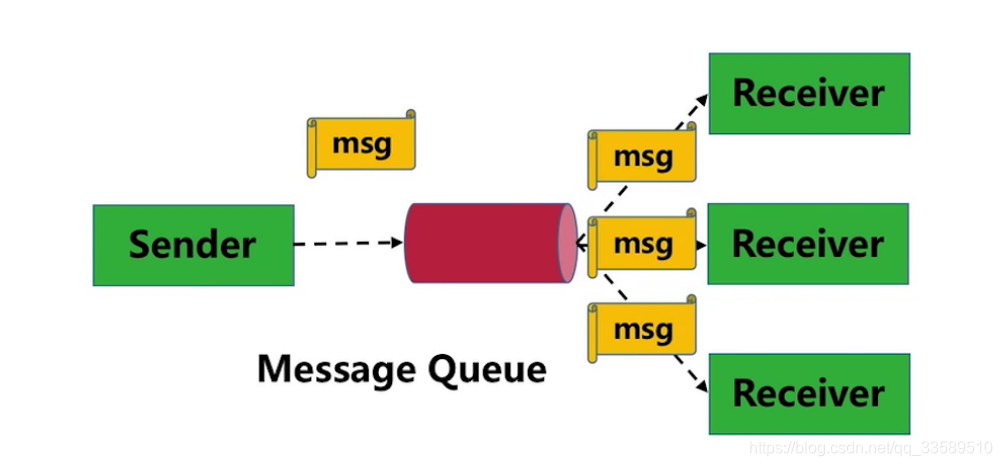 消息生产者生产消息发送到queue中,然后消息消费者从queue中取出并且消费消息。这里要注意: