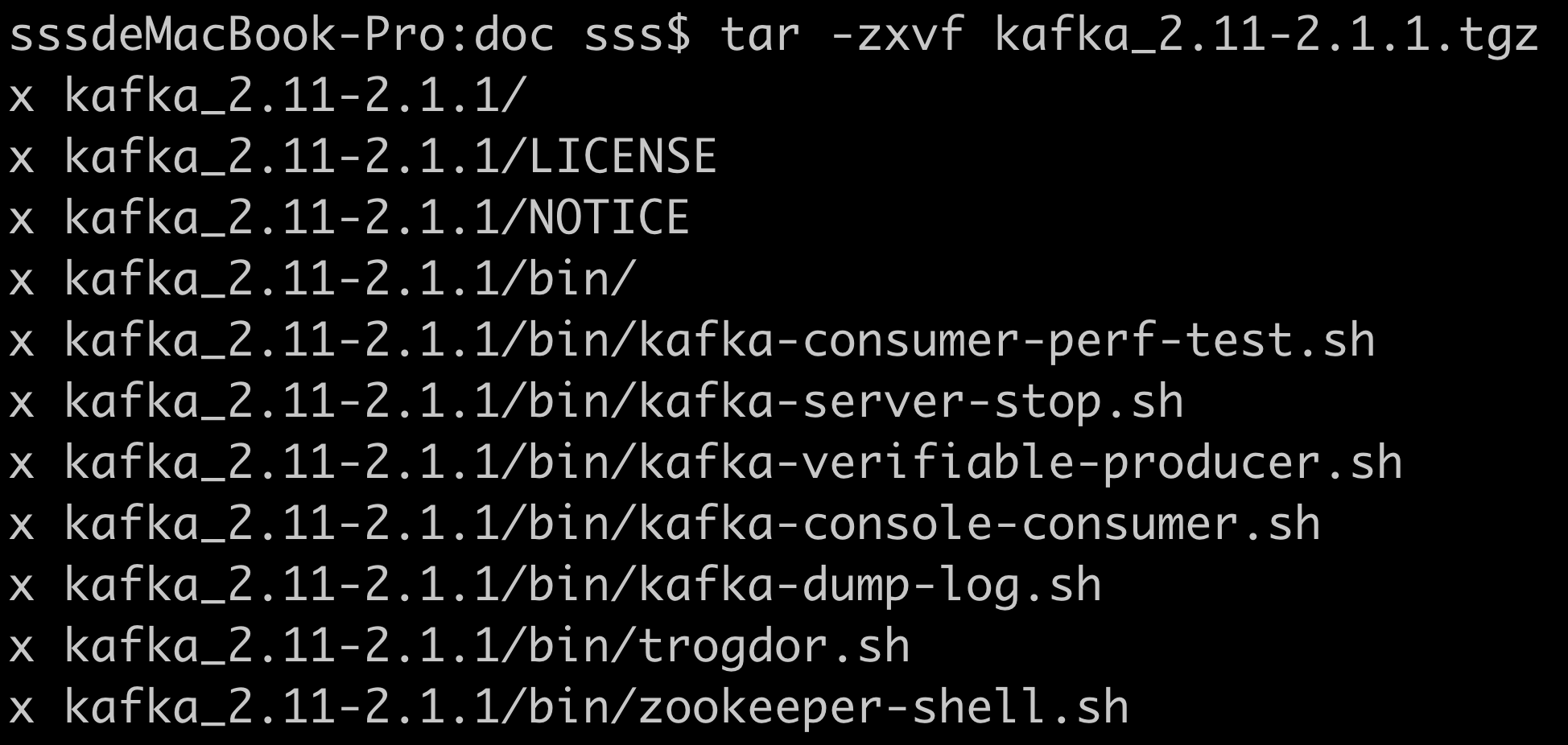 - tar -zxvf kafka_2.11-2.1.1.tgz