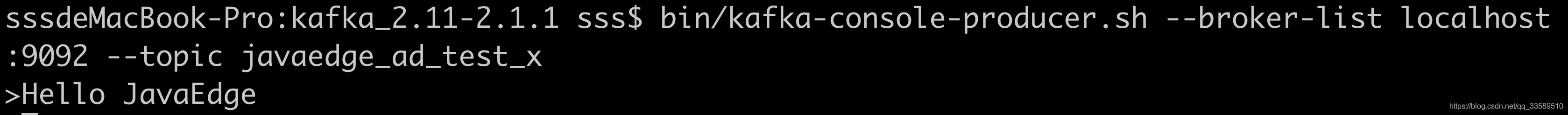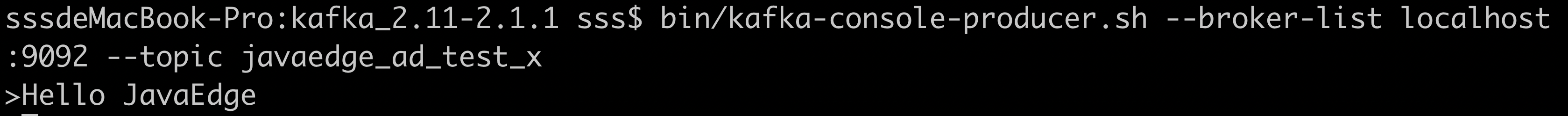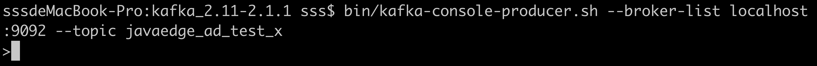 bin/kafka-console-producer.sh --broker-list localhost:9092 --topic javaedge_ad_test_x