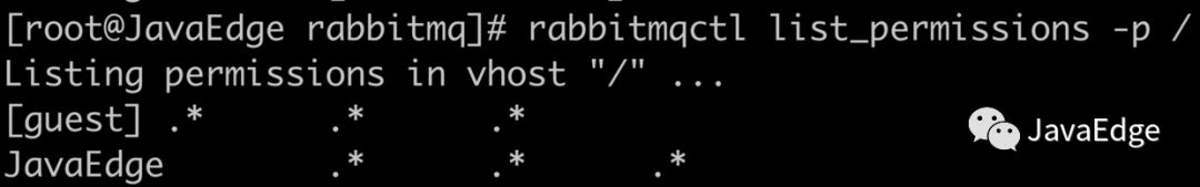 rabbitmqctl clear_permissions -p / JavaEdge