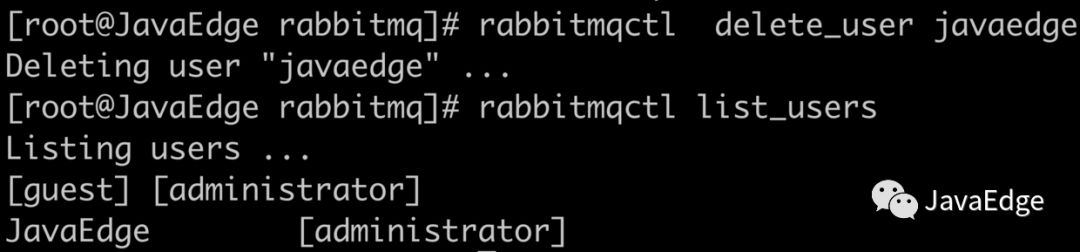 Clearing permissions for user "JavaEdge" in vhost "/"