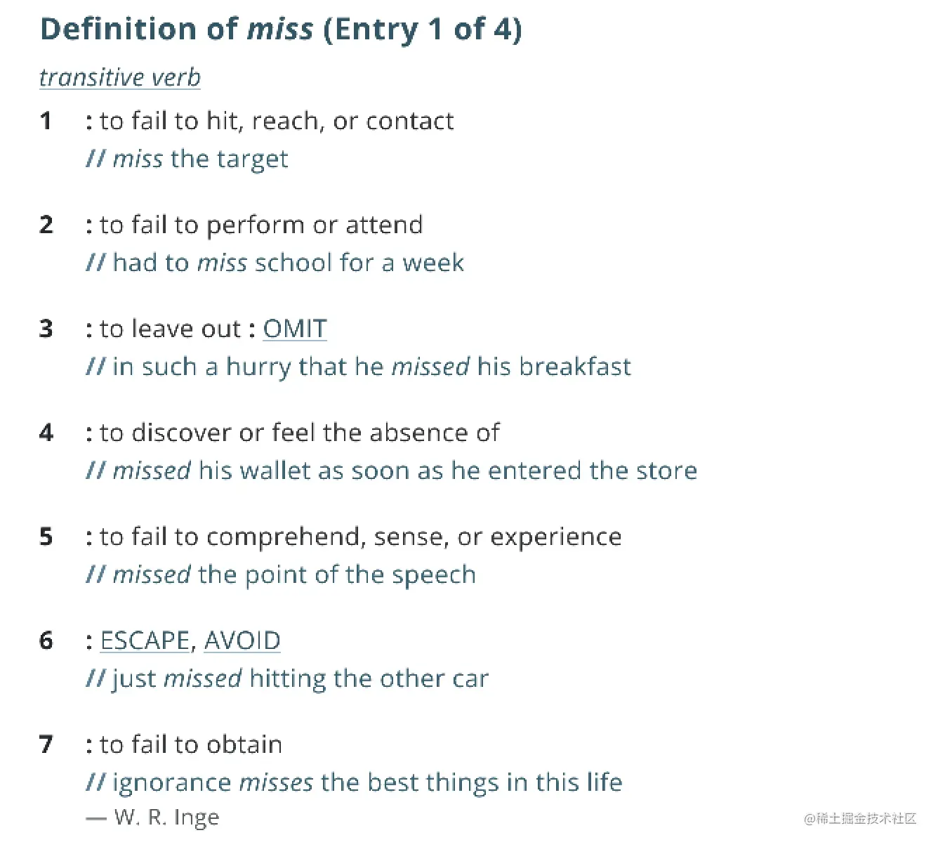之前很火的鲁迅先生写的枣树的梗被大家各种套用。原文是这样的: "在我的后园,可以看见墙外有两株树,一株是枣树,还有一株也是枣树。" 今天我也想玩一下这个的梗: "在我的脑海里,可以看到两个单词,一个是miss,还有一个也是miss"。但是与鲁迅先生不同的是我这里的两个词是两个意思了。看到一个很喜欢的解释miss两个含义用法的句子: