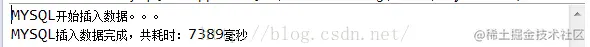 System.out.println("MYSQL插入数据完成,共耗时:"+(System.currentTimeMillis() - insertStart)+"毫秒");