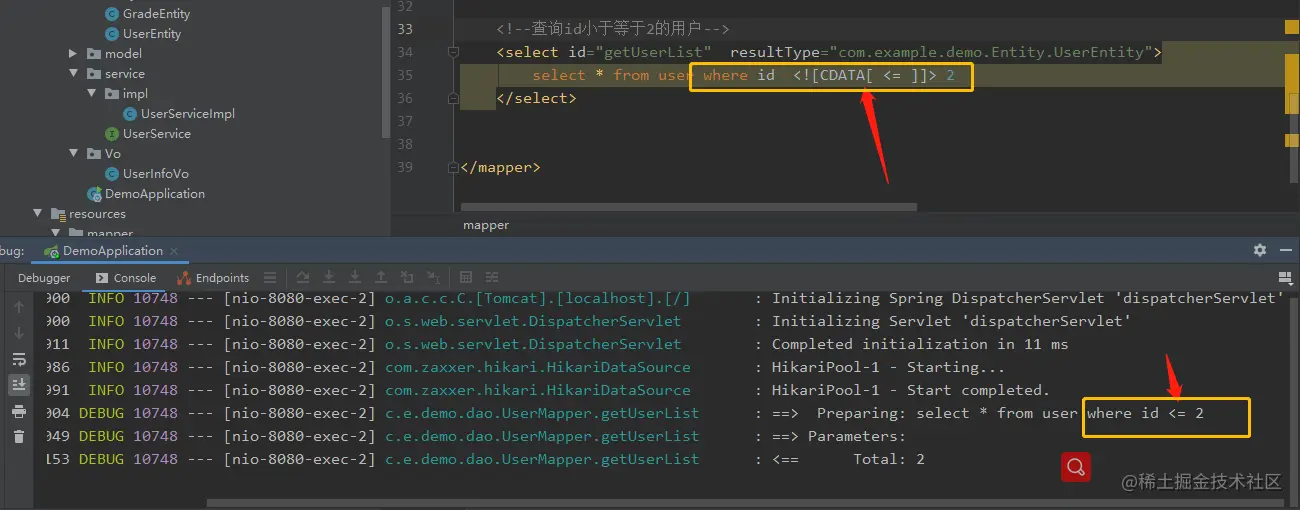 - springboot系列(十):mybatis之xml映射文件>、<=等特殊符号写法