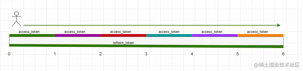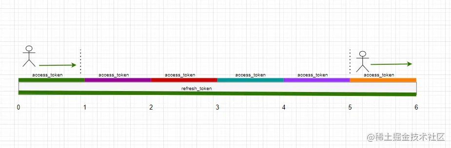 接下来, 我们继续看两个令牌在下面场景的应用, 假设有一个用户需要在后台管理界面上操作6个小时。