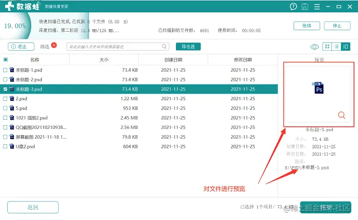 单击PSD文件,就可以进行文件恢复了。