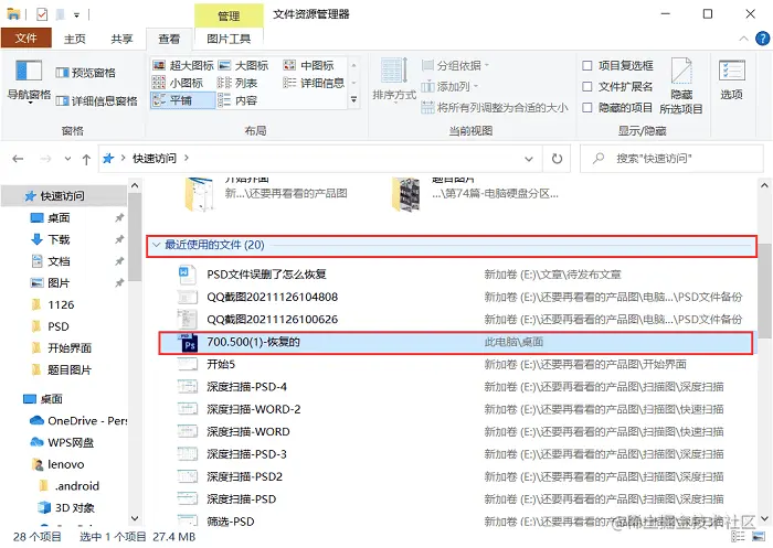 方法一:在最近选项中恢复误删除的PSD文件