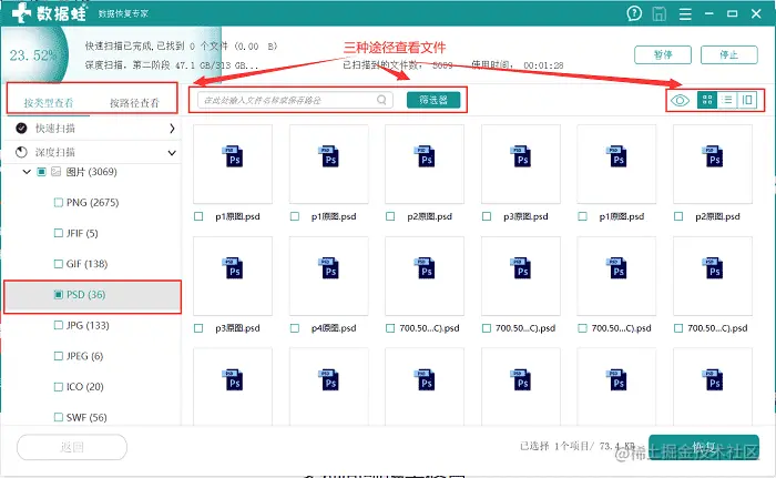 接下来就让小编为你演示,怎么通过数据蛙数据恢复专家进行快速高效的PSD文件恢复。