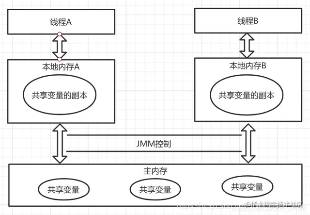 为了提高效率,线程之间的共享变量是存储在主存当中,每一个线程都有一个属于自己的本地内存。