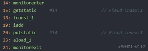 当加上了synchronized同步机制之后, 会插入monitorenter、monitorexit两条指令。