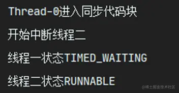 此时线程二启动去尝试获取锁,获取失败之后变成堵塞状态,即便强行中断线程二,最后看到线程二的状态仍是堵塞的。