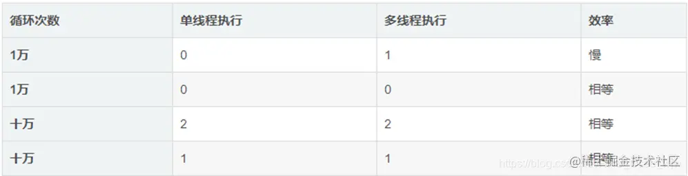 有人做过这样一个实验:“一段代码,有两个方法对各自的属性进行累加操作,其中一个方法采用多线程”,部分结果如下:
