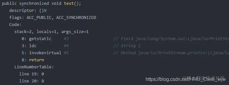 同步方法在反汇编后,会增加ACC_SYNCHRONIZED修饰,会隐式调用monitorenter、mointorexit。