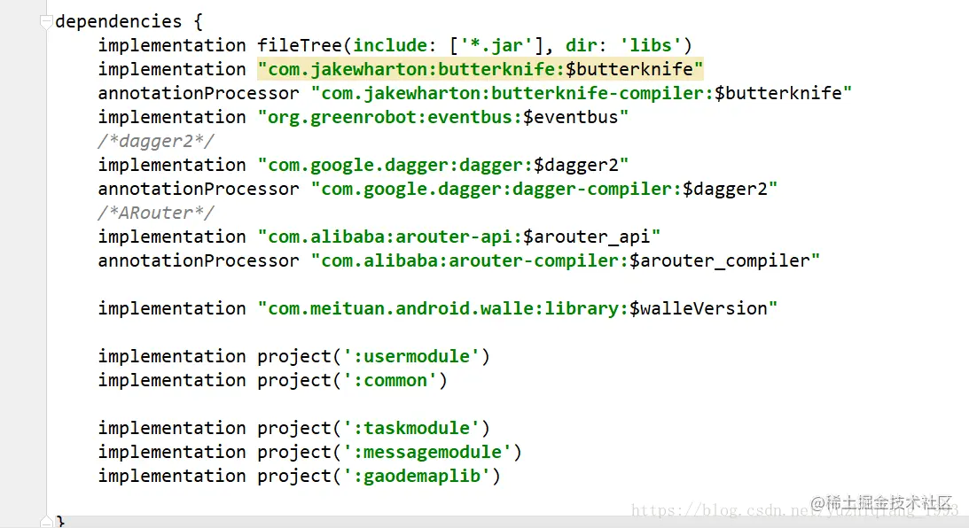 模块划分完毕后我们需要解决的就是一些第三方库的依赖,以及默认的一些gradle配置了。