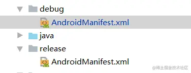 manifest.srcFile 'src/main/debug/AndroidManifest.xml'