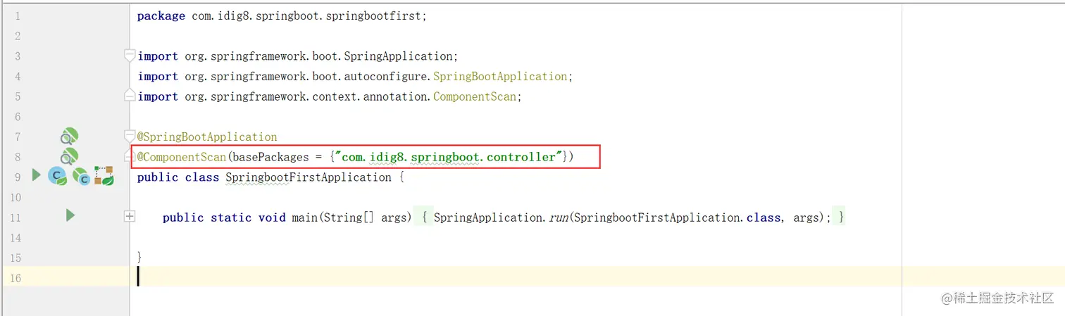 修改SpringbootFirstApplication,增加扫描包