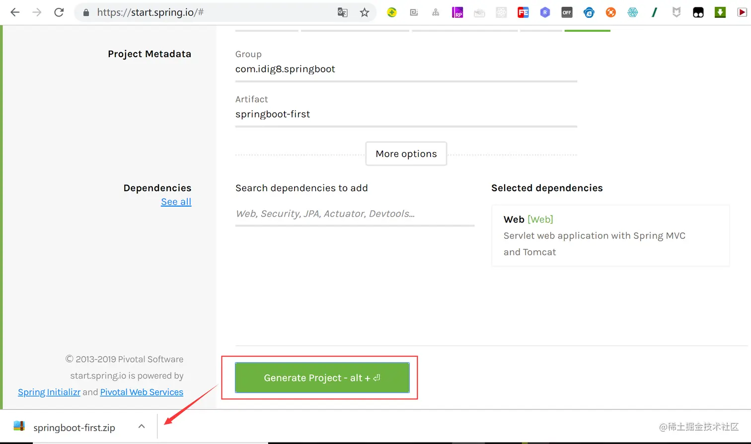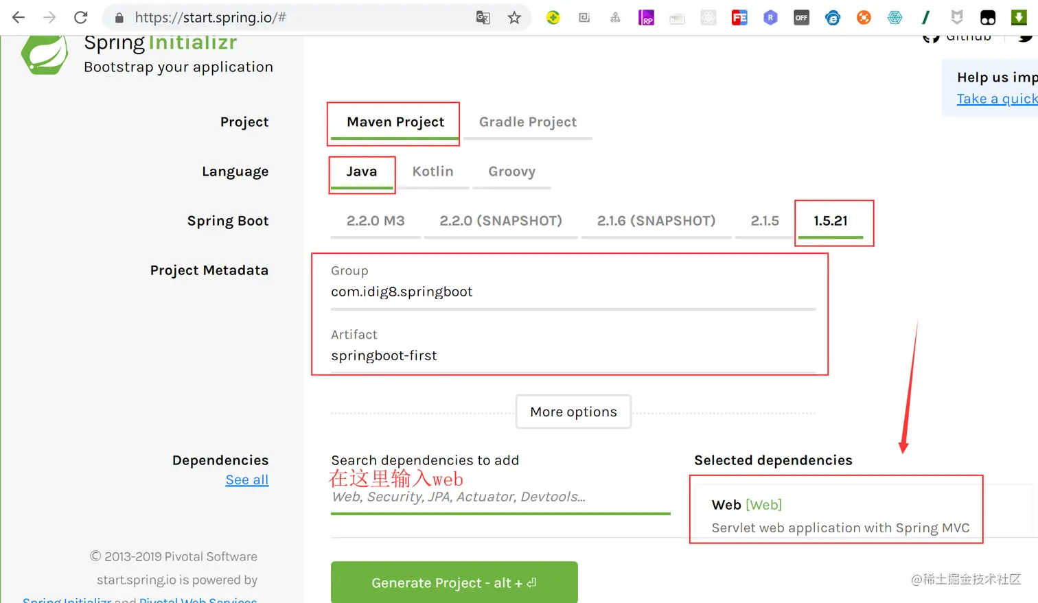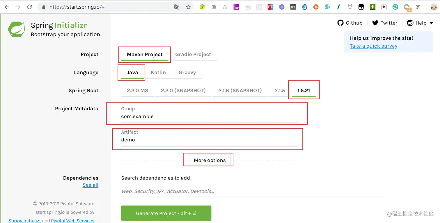 start.spring.io/ springboot的一个搭建的向导。