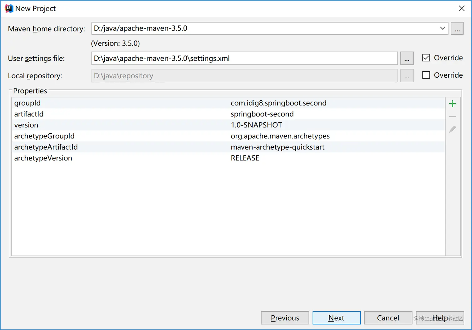 新建一个普通的maven工程 【注意:Spring boot是web工程,但是我们这里只需要建立quickstart即可,因为spring boot内嵌了servlert容器】