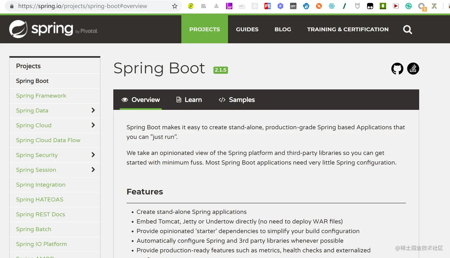 点击learn-选择版本1.5.10.RELEASE。建议:生产环境中选择稳定的版本