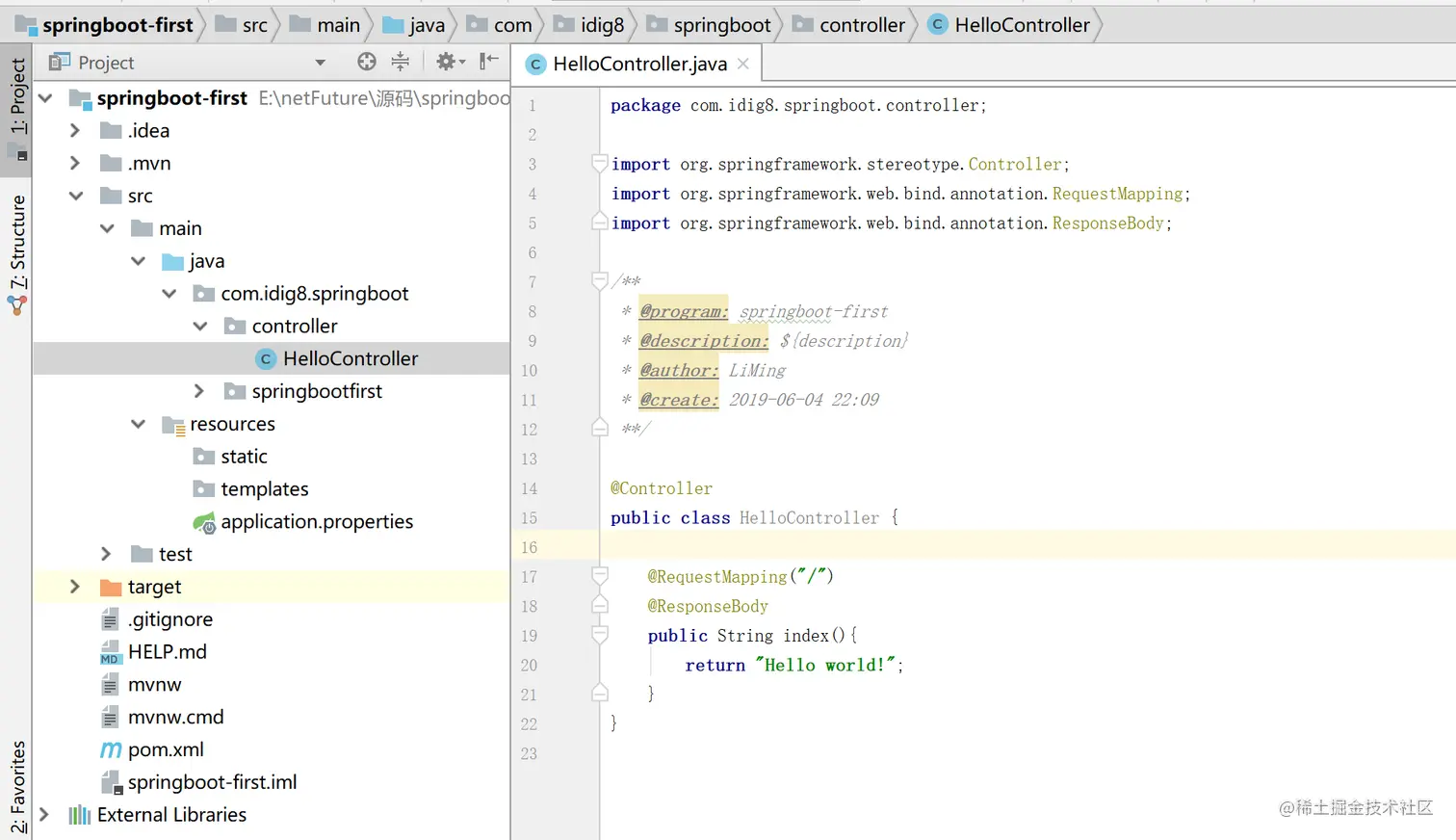 下载的springboot-first解压,只用idea打开