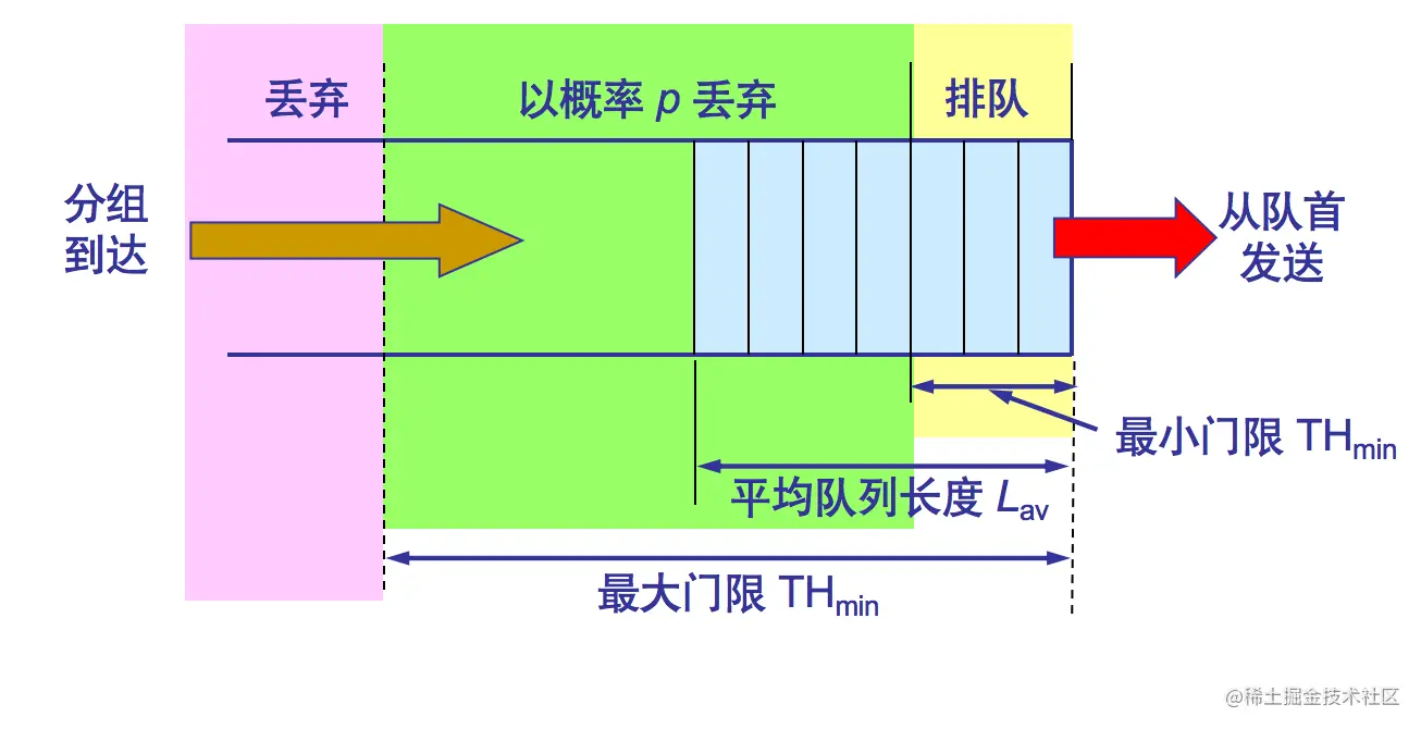当THmin < Lav < THmax时,丢弃率 0 < p < 1。