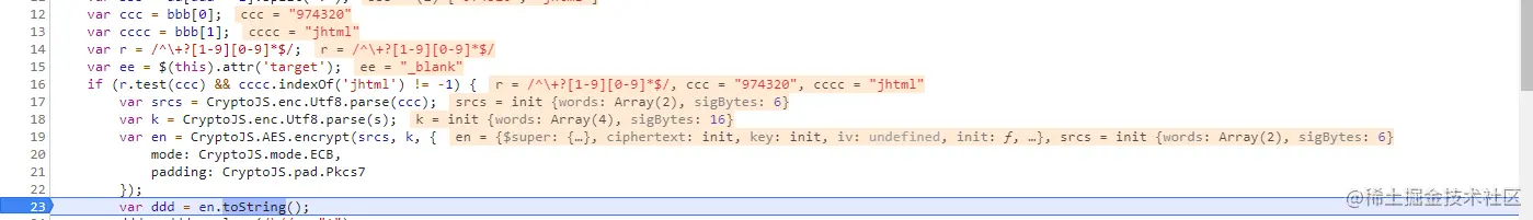 最后点击链接跳转,发现就能断到加密的位置了,参数和加密,也就一目了然了。