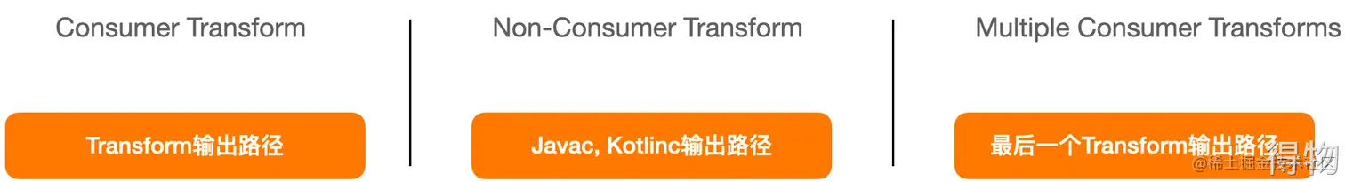 首先要根据Consumer Transform决定参与WadeDexBuild的.class文件路径,消费Transform Inputs的Transform即Consumer Transform。当接入了一个Consumer Transform,它的输出路径参与编译; 没有Consumer Transform时,Java Compile、Kotlin Compile的输出路径参与编译; 如有多个Consumer Transforms,取最后一个Transform的输出路径作为DexBuild输入。
