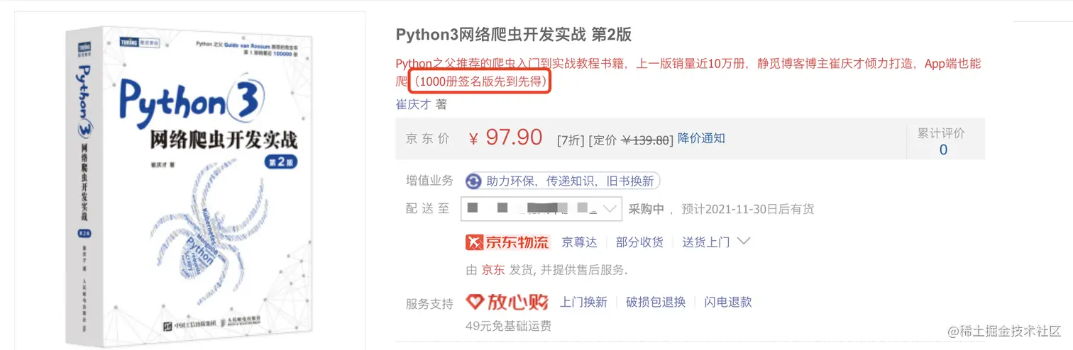 今天告诉大家一个好消息:《Python3 网络爬虫开发实战(第二版)》上架了!!!!