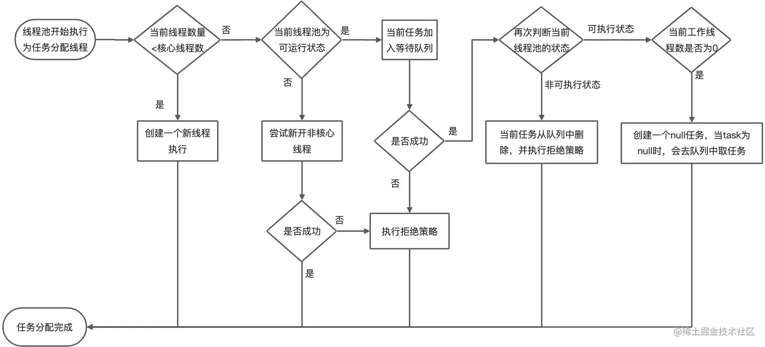 通过分析源码,其实就能很清楚地看到,当线程池处理多个任务时的执行逻辑是这样的: