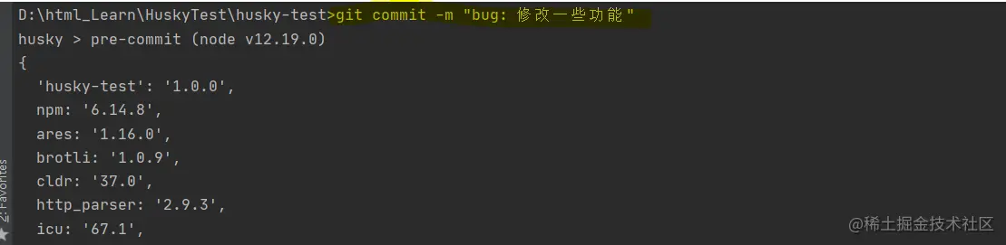 可以看到触发了package.json中配置的husky中的pre-commit钩子,执行了npm version