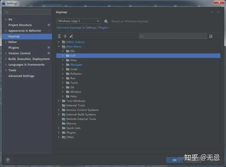 可以通过FIle->Settings->Keymap->Main Menu对常用的快捷键做自定义设置。