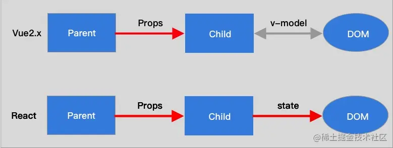 你仔细看,是不是就是 MVVM?那问题的答案很明显了,React 不是 MVVM。