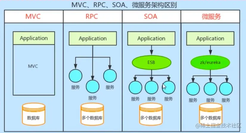 后端整个的演进可以如上图所示,经历了不断迭代,具体的解释这里不做展开。跟 SOA 相提并论的还有一个 ESB(企业服务总线),简单来说ESB就是一根管道,用来连接各个服务节点。为了集成不同系统,不同协议的服务,ESB 可以简单理解为:它做了消息的转化解释和路由工作,让不同的服务互联互通;使用ESB解耦服务间的依赖
