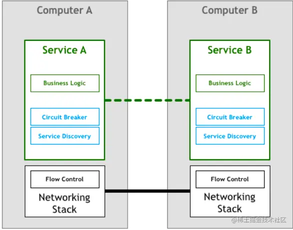 通常,断路器和服务发现等基础实现独立接入。