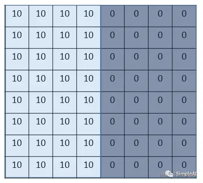 从一个最简单的栗子谈起——边界检测,假设我们有这样的一张图片,大小 8×8