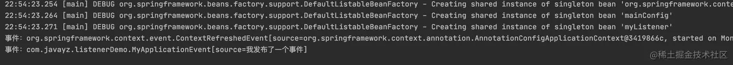 context.publishEvent(new MyApplicationEvent("我发布了一个事件"));